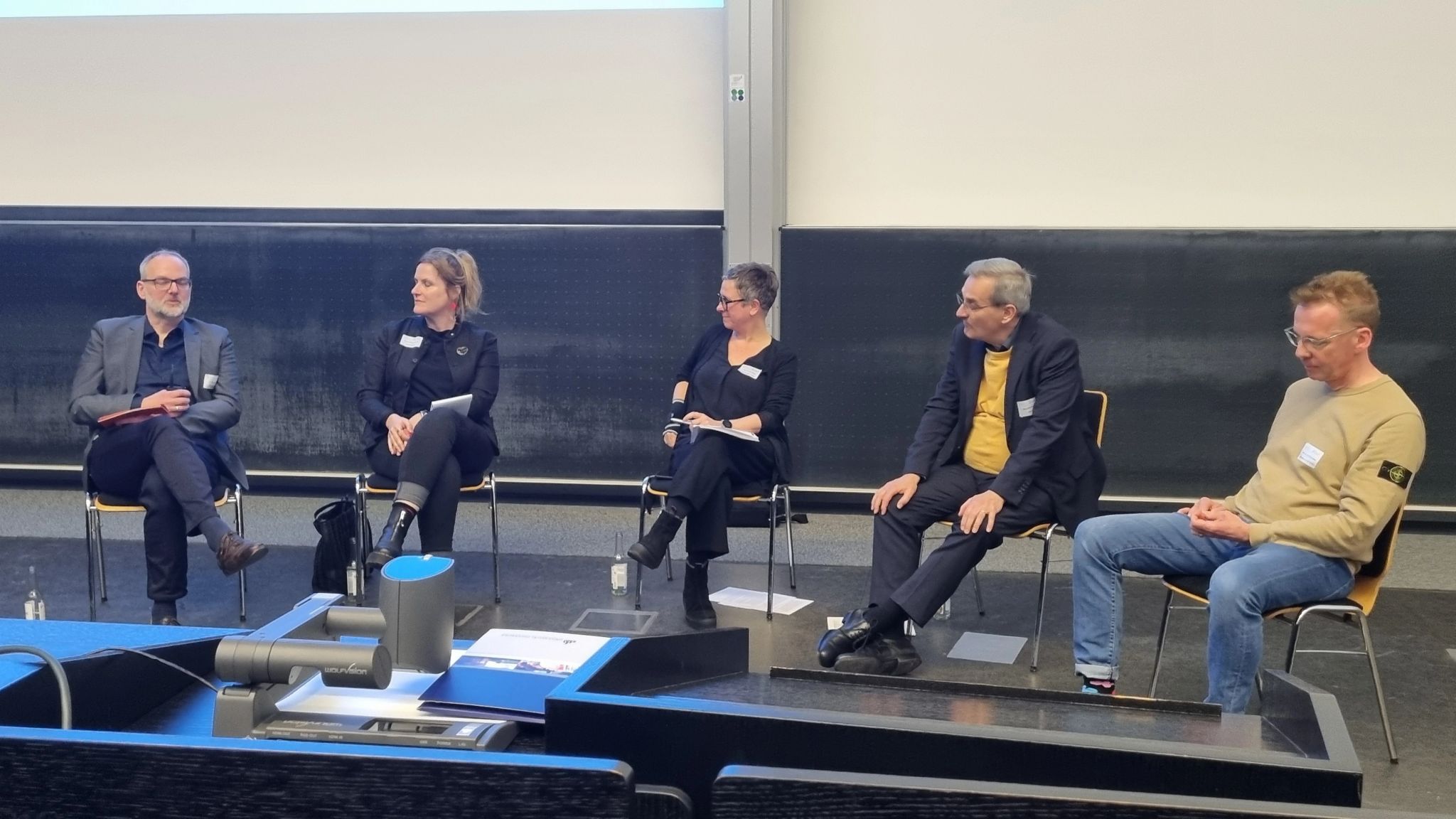 Die Tagung zeichnete sich neben vielen anderen Aspekten auch dadurch aus, dass eine Beteiligung des BMFTR gegeben war. Herr Mälzer stellte das Auswahlverfahren der BMFTR-Förderlinien während der Mitgliederversammlung vor und Herr Greisler beteiligte sich an einer abschließenden Podiumsdiskussion zum Thema „Hochschulen in Zeiten gesellschaftlicher Umbrüche“, an der außerdem Insa Großkraumbch vom Wissenschaftsrat, Ivo van den Berk von der Stiftung Innovation in der Hochschullehre und Uwe Wilkesmann für die GfHf teilnahm. Moderiert wurde die Podiumsdiskussion von Eva Cendon.